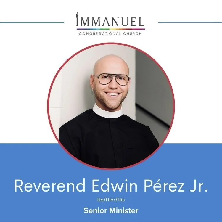 Pastor Edwin continues to mentor Latine local pastors as the part-time volunteer General Pastor of Manantial de Gracia (“Spring of Grace”)—a small and the only Latine and Spanish-speaking LGBTQ+ affirming UCC congregation in the Conference—and teaches Social Ethics online as an Adjunct Professor at Berkeley School of Theology. He is most excited about his call to serve Immanuel Congregational Church as settled Senior Minister, leading into the church's next chapters of ministry of love, justice, and peace.